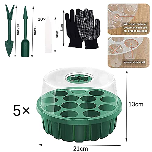 【Productgrootte】: De grootte van de zaadschaal bedraagt 13 x 21 (zie afbeelding voor details). Elke kleine broeikas heeft 13 eenheden. Drainagegaten aan de onderkant voorkomen dat de wortels te veel water opnemen en zijn ideaal voor het kiemen van zaden.