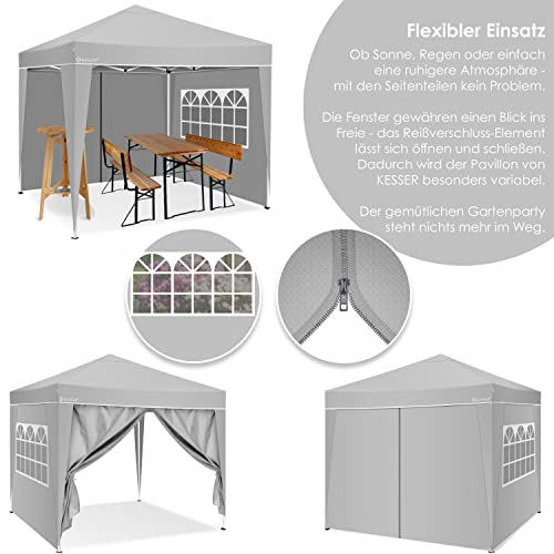 KESSER® 2 x zijwand voor paviljoen, 3 x 3 m, vouwpaviljoen, pop-up, inklapbaar, ruimtebesparend, op te bergen, grijs